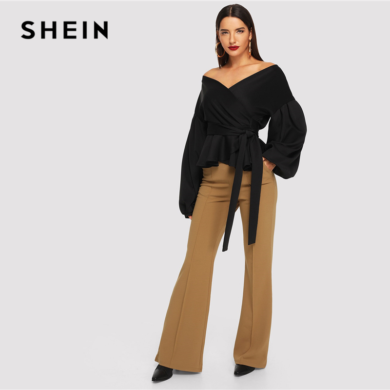 SHEIN White Office Lady Elegant Lantern peplum office tops