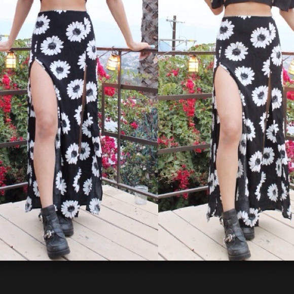 High Slit Black And White Floral Maxi black and white floral maxi skirt