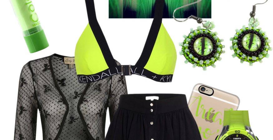 Goth Punk Outfit: Say it with Neon black and neon green outfit