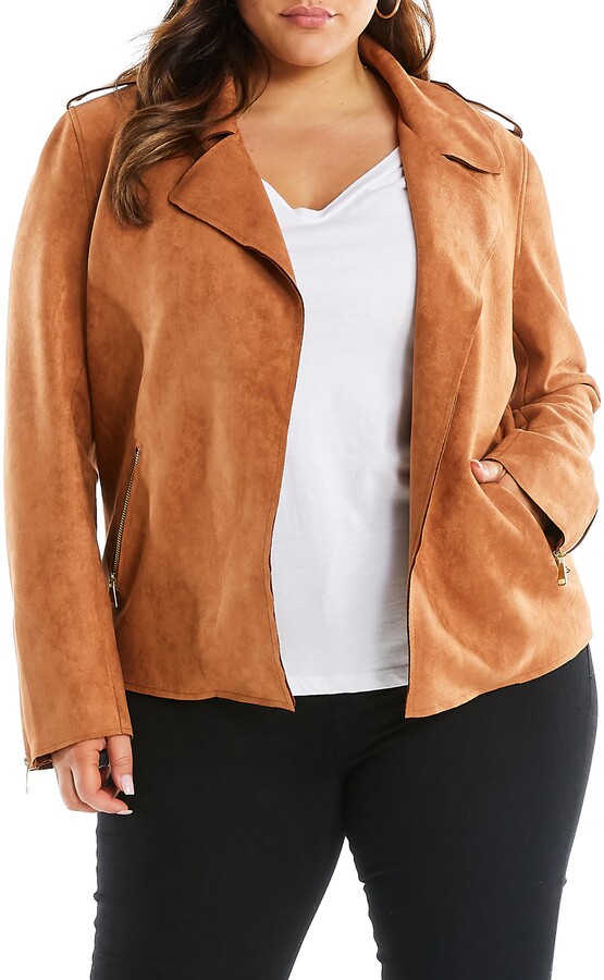 Women's Plus Size Suede Moto Jacket  plus size black suede biker jacket