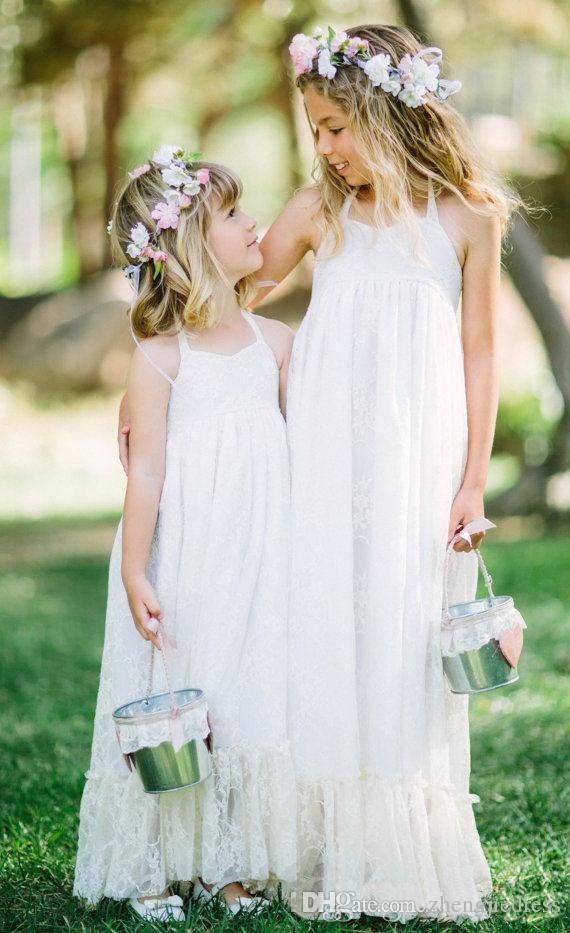 White Lace Halter Flower Girl Dresses white lace girls dresses