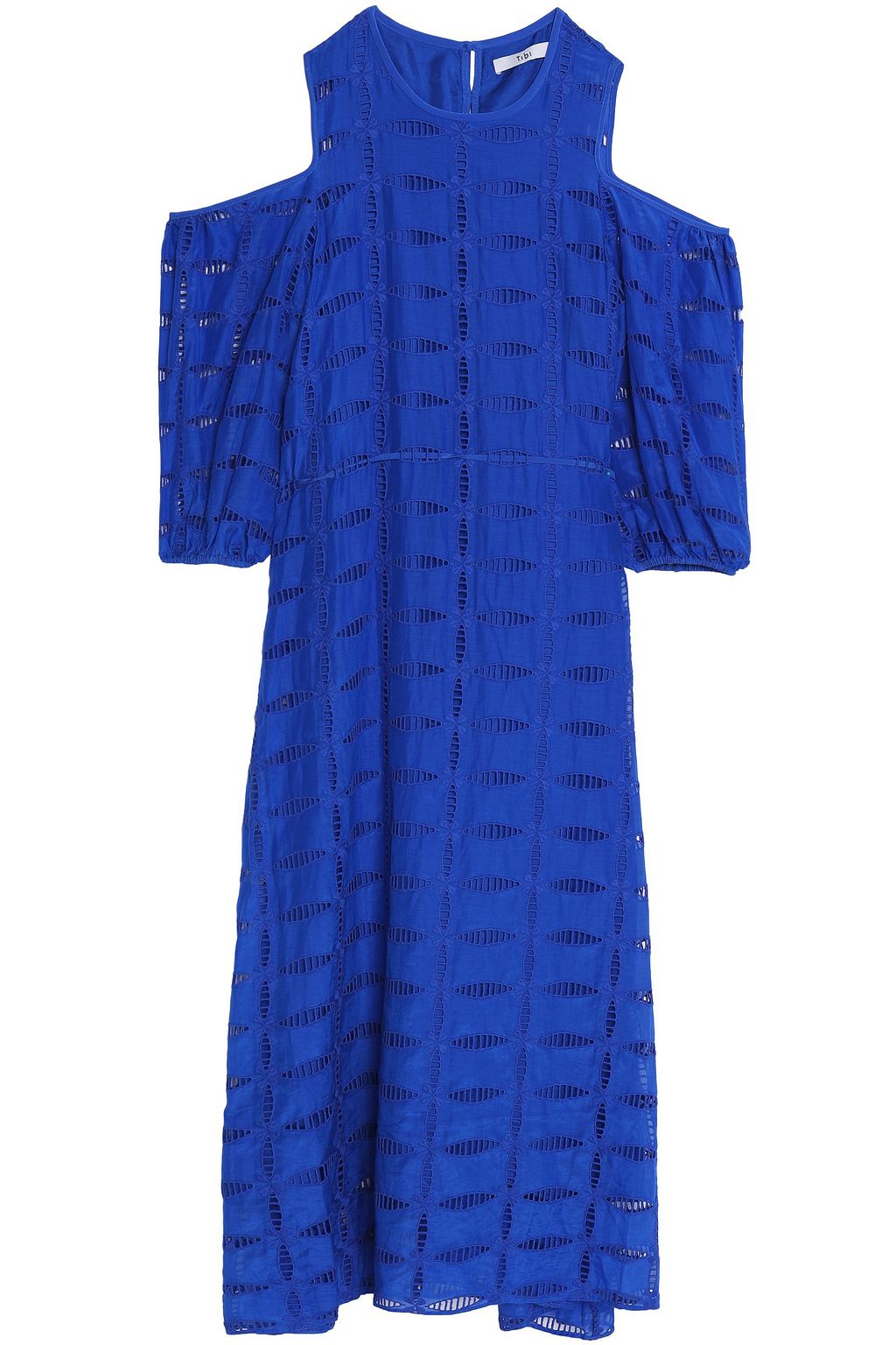 silk-blend midi dress tibi cold shoulder dress