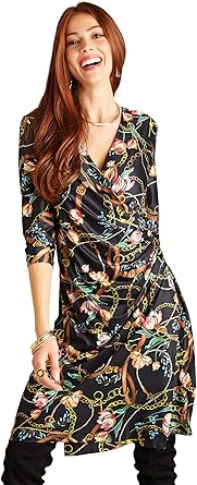 Black Tulip And Chain Print Wrap Dress black tulip dress uk