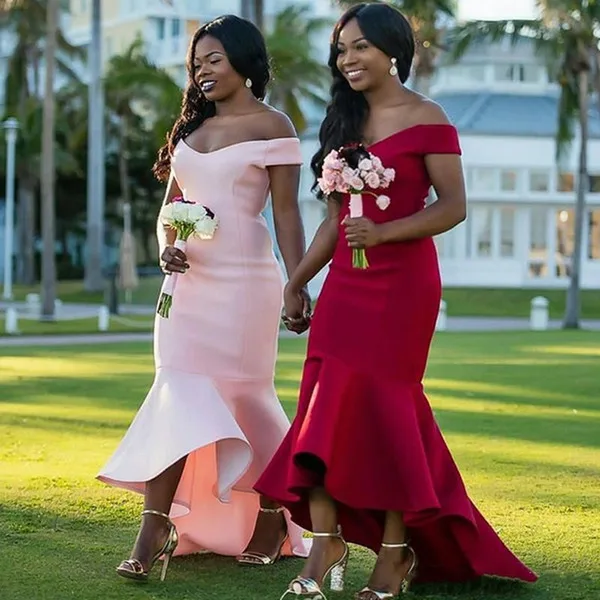 Mermaid Off-the-Shoulder Red Satin red pink bridesmaid dresses