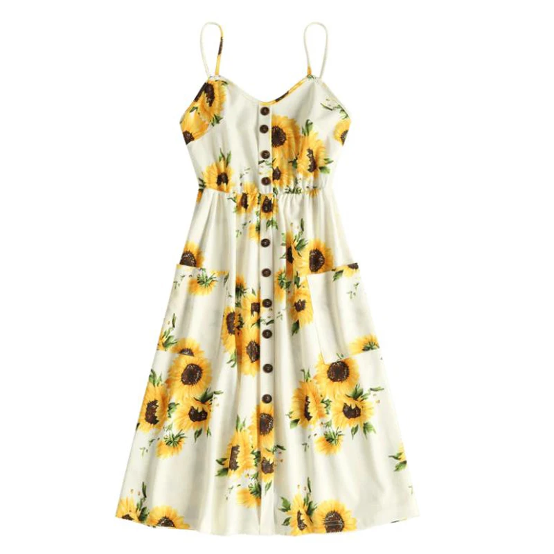 Shop Fashion Button Sunflower Print button sunflower print midi dress