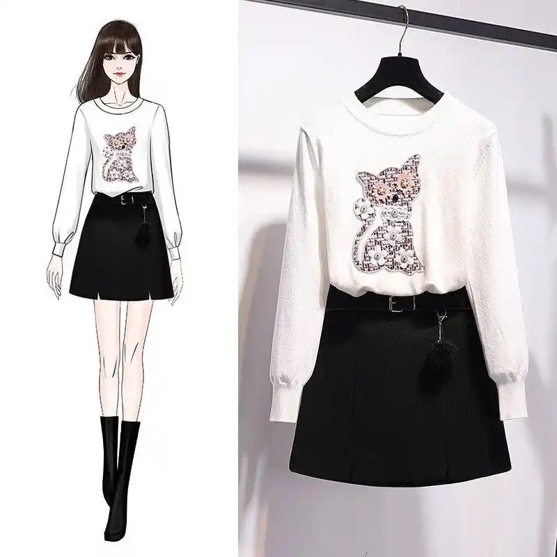 ICHOIX Elegant women 2 piece skirt set cute black two piece outfits