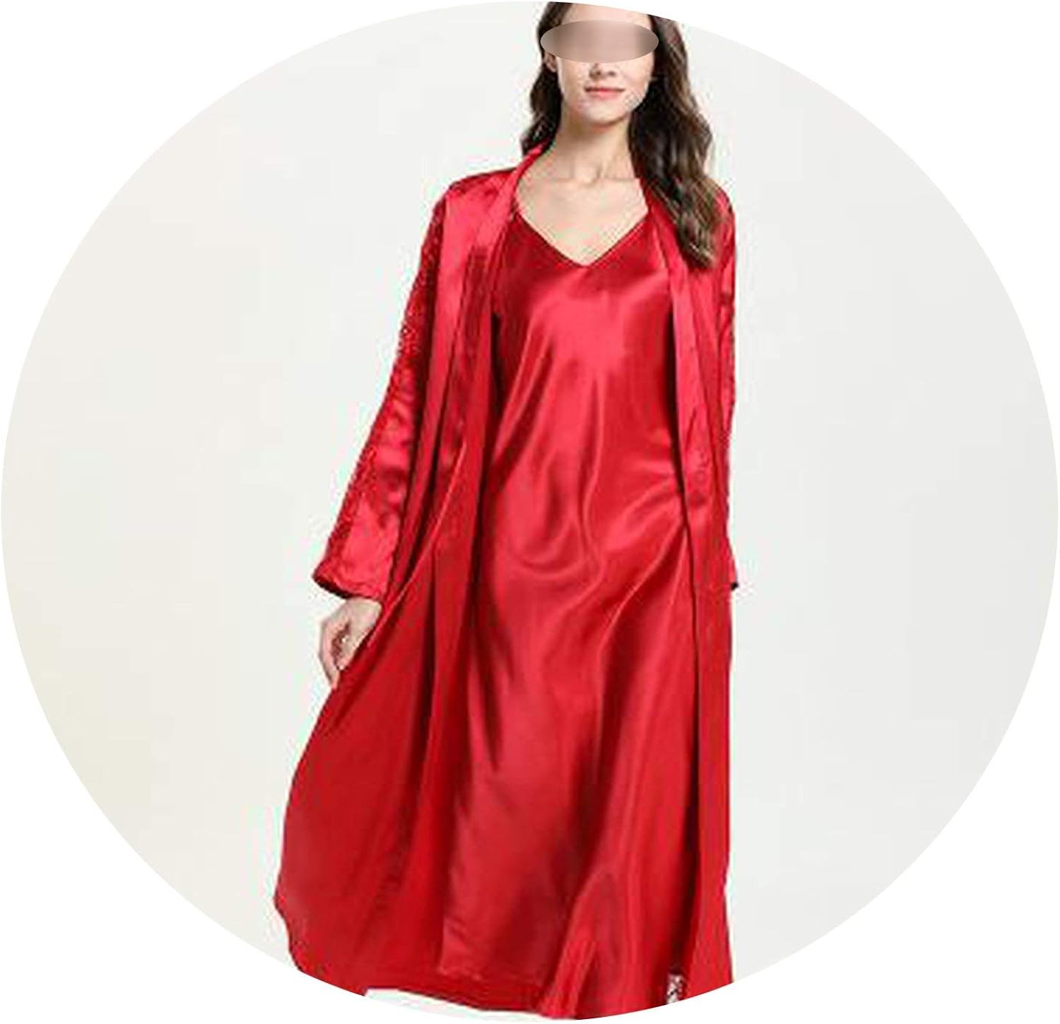 Sexy Satin Silk Night Dress Bathrobe night suit with robe