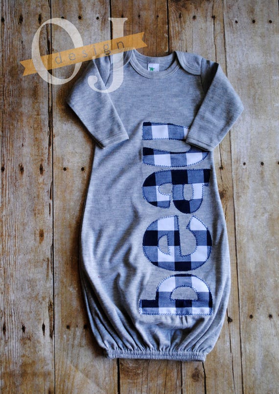 Personalized Baby Boy Gown Gray Navy navy blue newborn gown