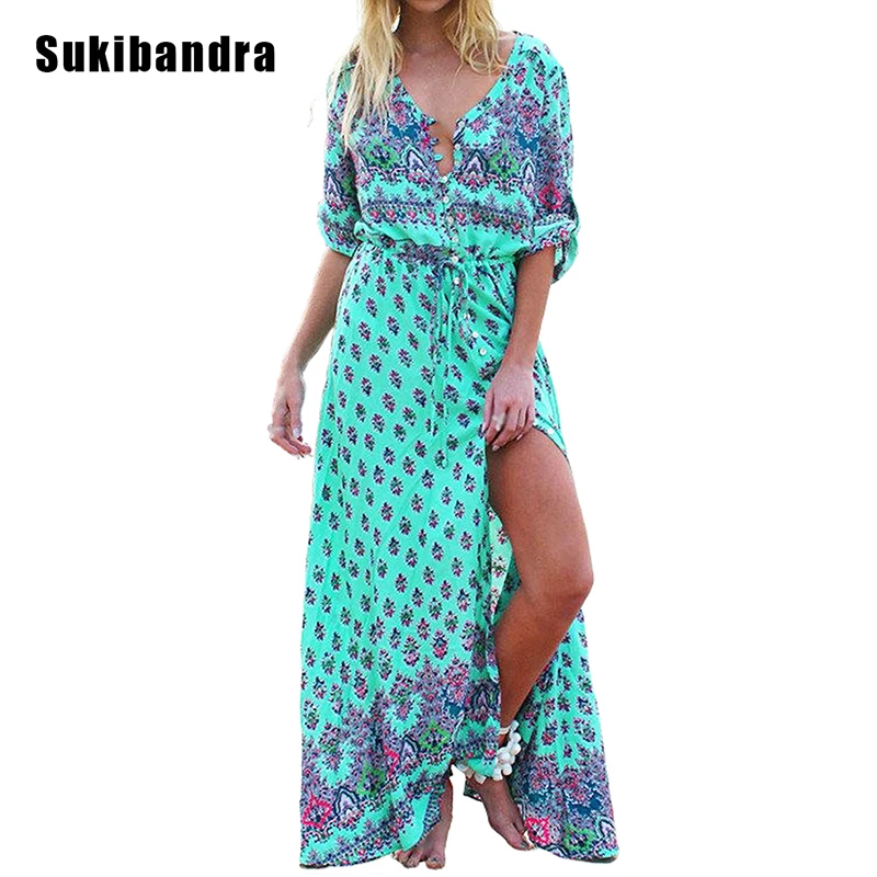 Sukibandra Neue Sommer Lange Floral maxi boho kleider