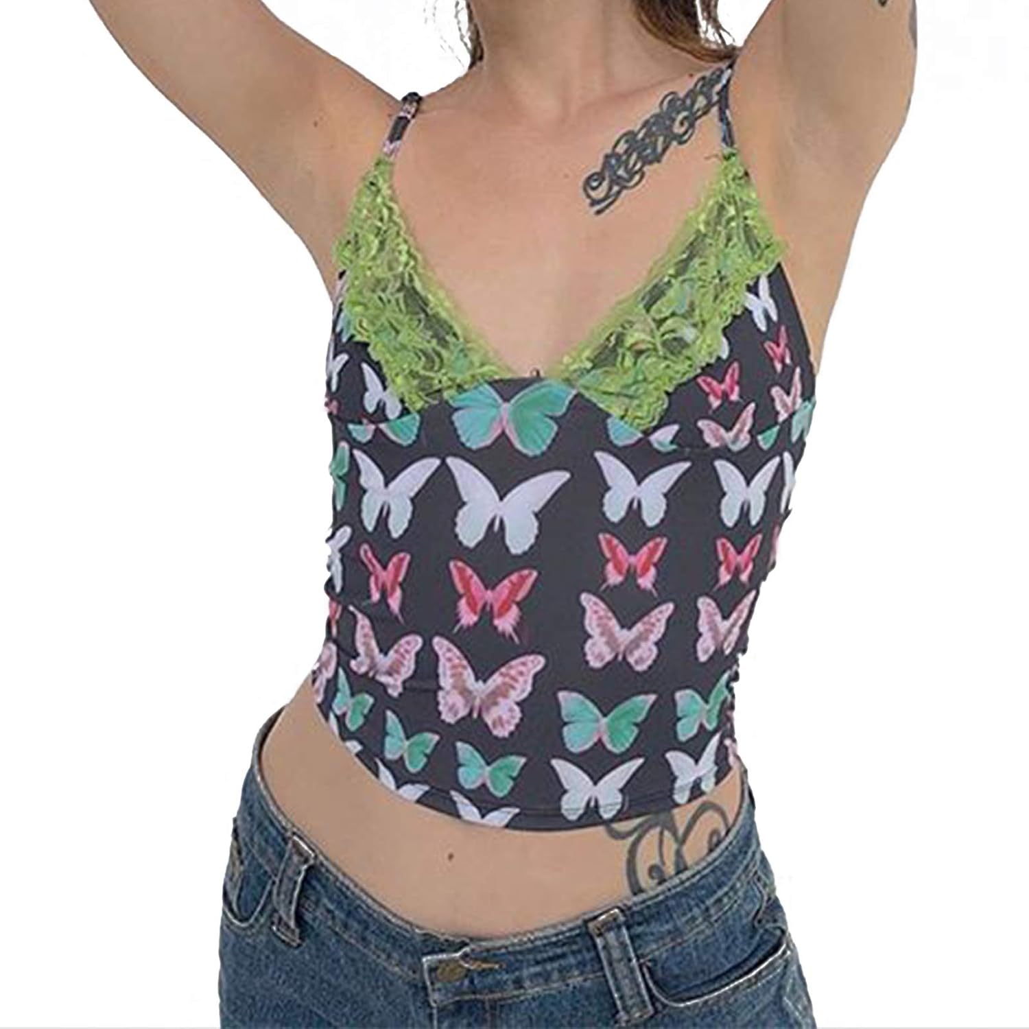 Women Lace Mesh Crop Top See Through cute girl tank top