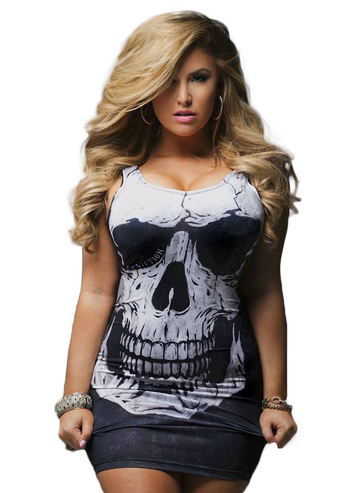 Women'S Fashion Punk Style Sleeveless sexy skull dress