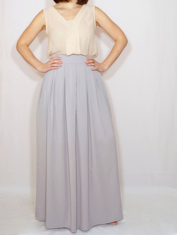 Light grey chiffon maxi skirt with grey chiffon maxi skirt