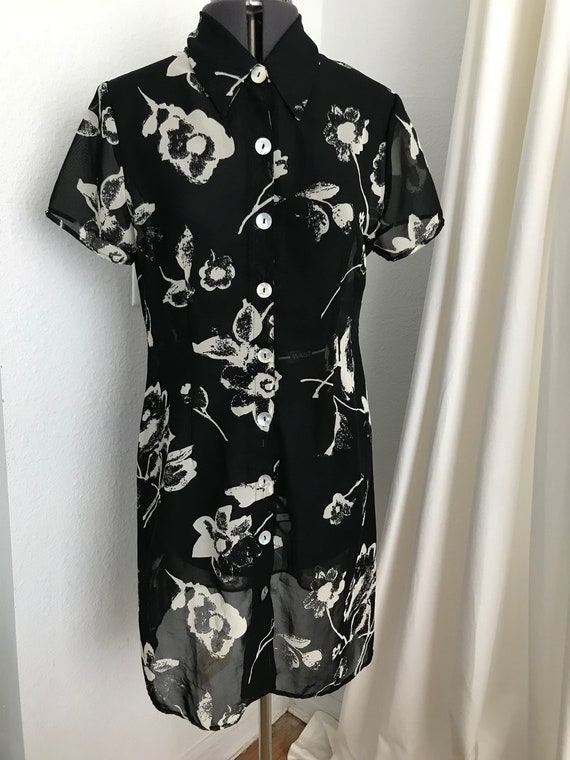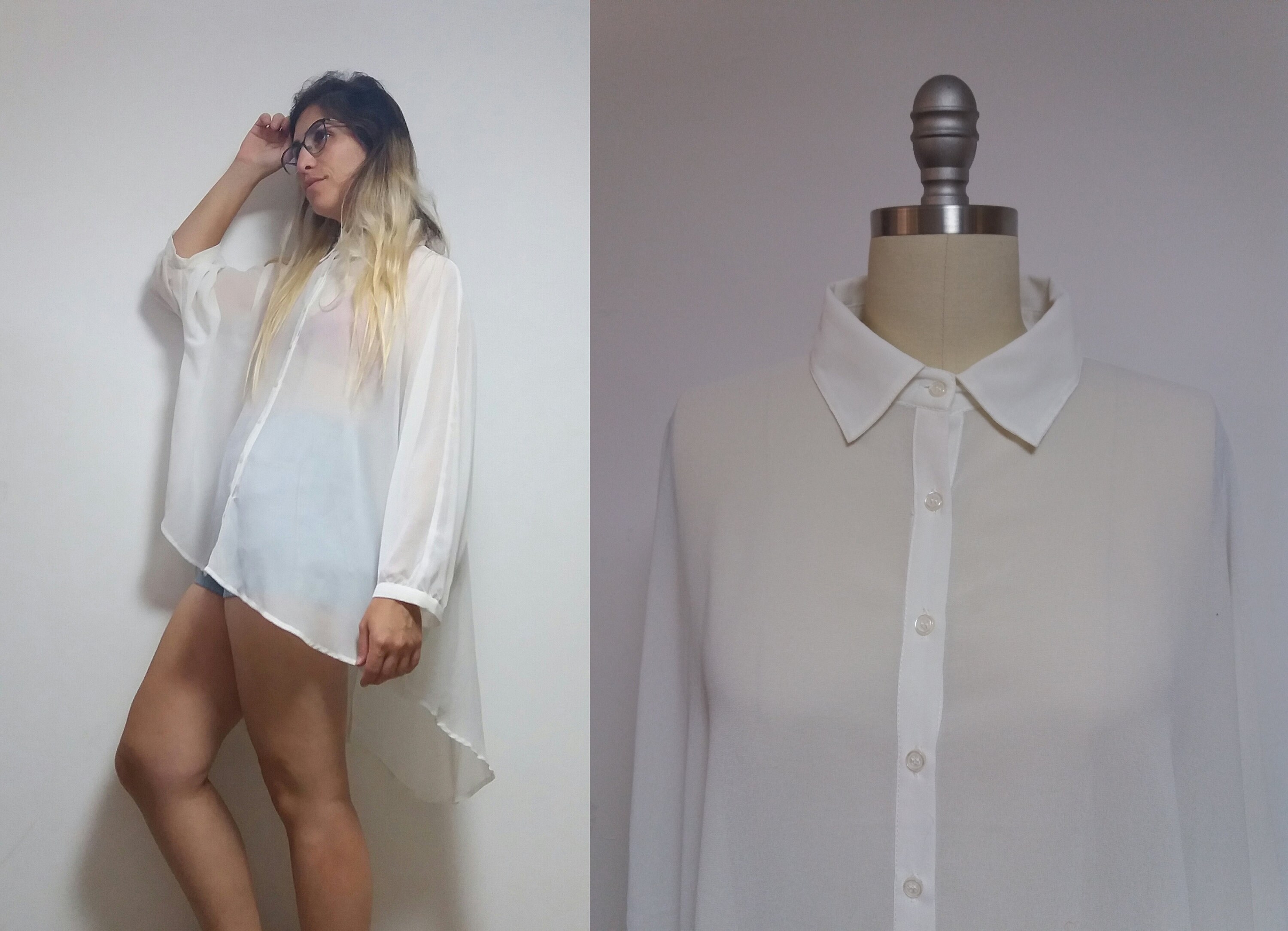 Vintage oversized grunge high low sheer sheer white dress shirt