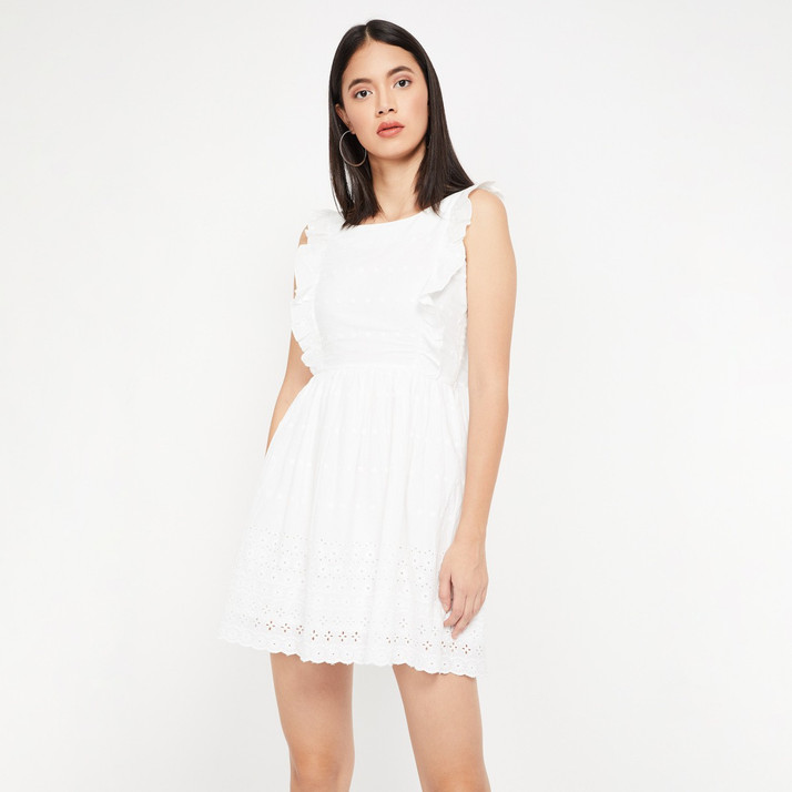 Lifestyle -GINGER Women Gathered White flipkart white dress
