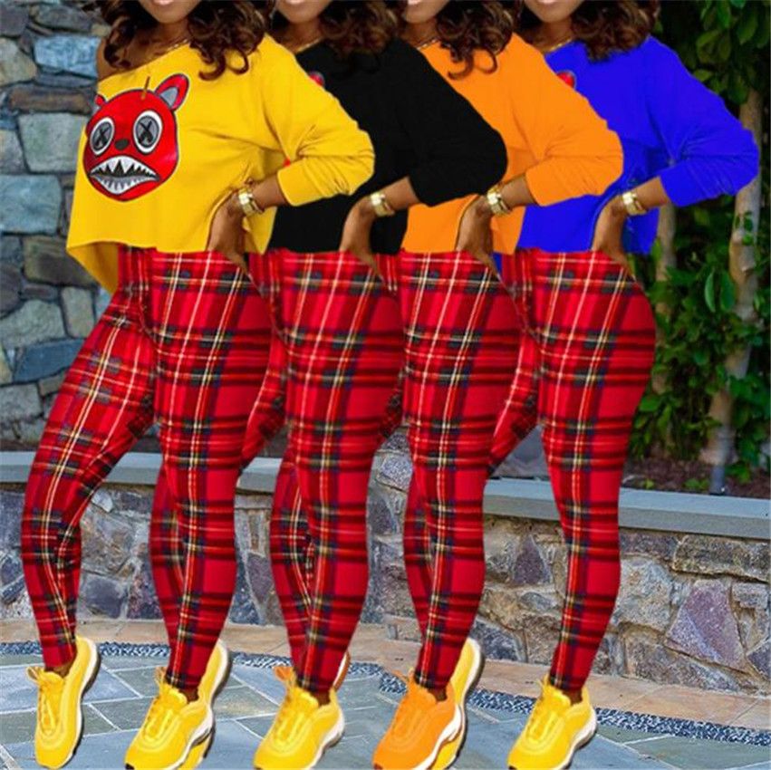 2020 Women Clothes Designer Printed red plaid pant suit womens