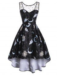 Star Moon Sun Print Lace Panel Dip Hem lace panel open back dip hem dress