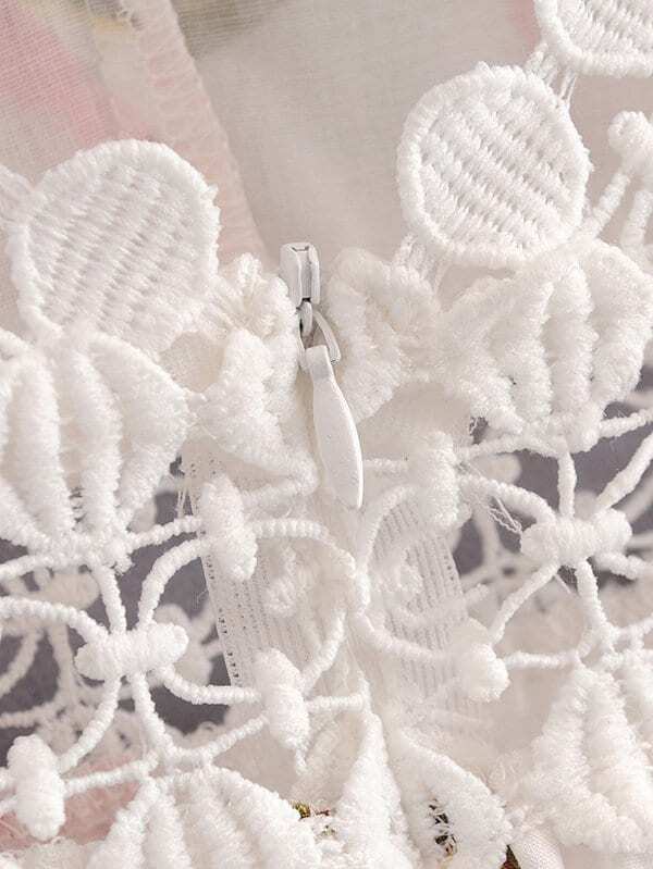 Sleeveless Dip Hem Lace Panel Dress lace panel open back dip hem dress