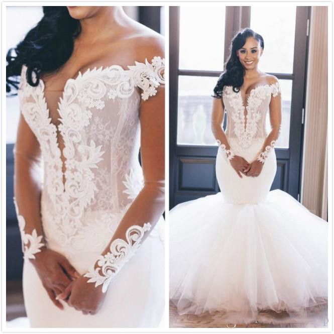 2019 Lace Mermaid Wedding Dresses Long long affordable dresses