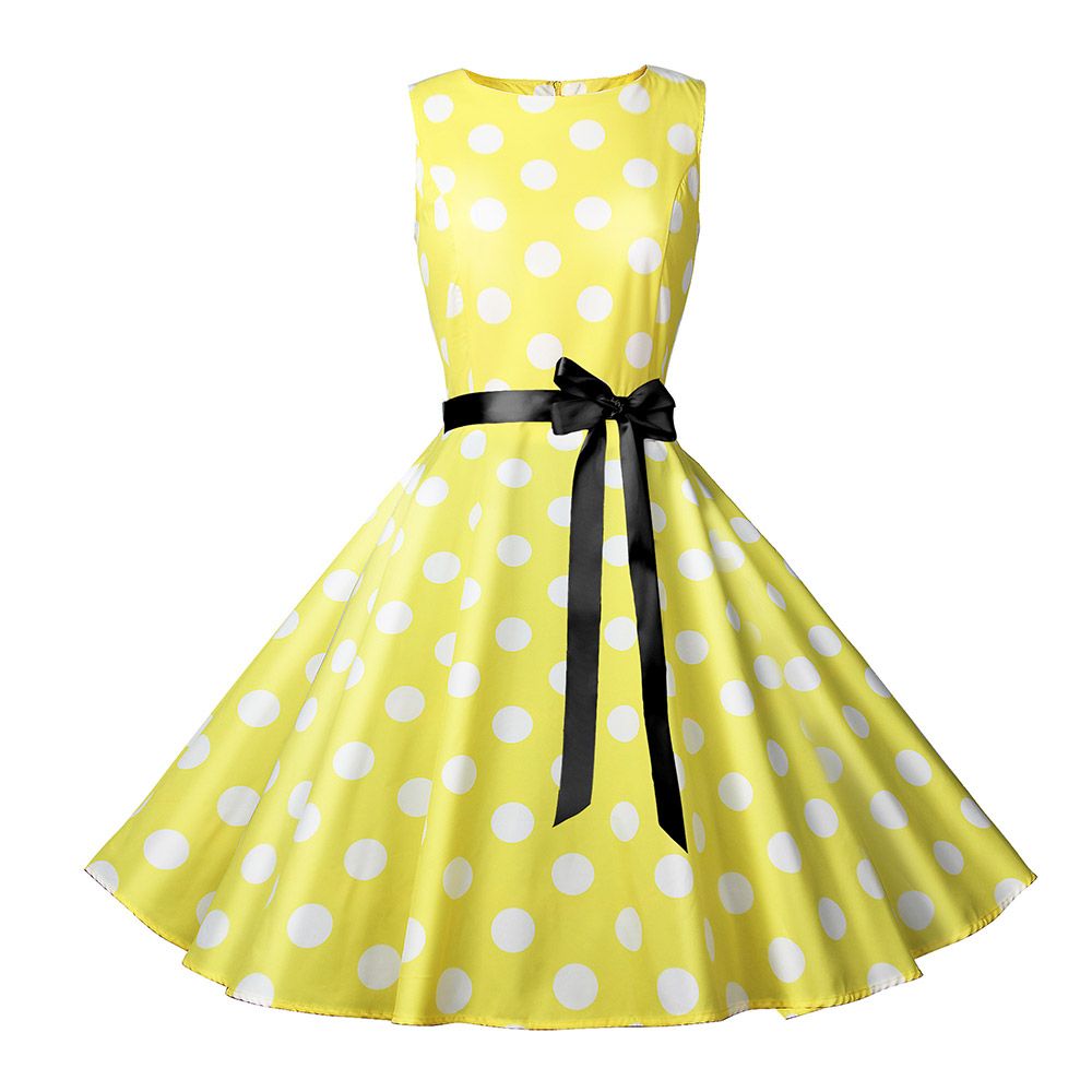 Yellow Dots Print Vintage Dresses cute vintage dresses cheap