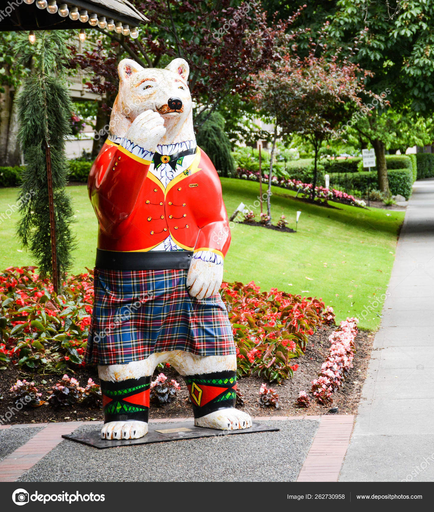 Giant Stuffed Bear Kilt Greets Hotel bear in a kilt
