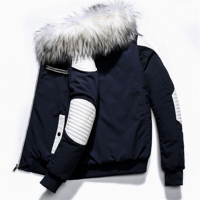 Color Matching Slim Hooded Jacket Mens cheap winter coats size 22