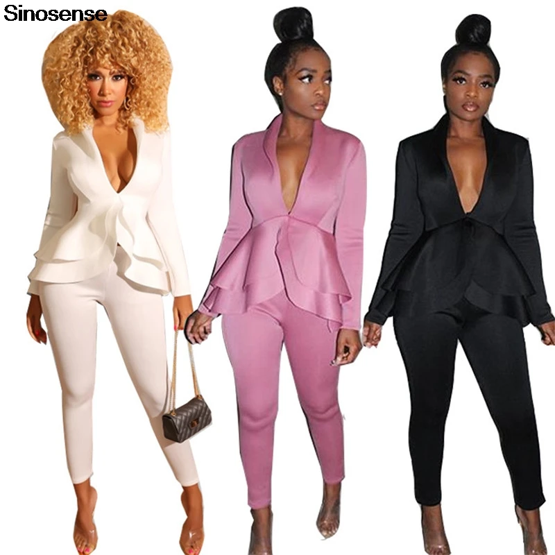 New Fashion Autumn Two Piece Set Solid black white and pink outfit