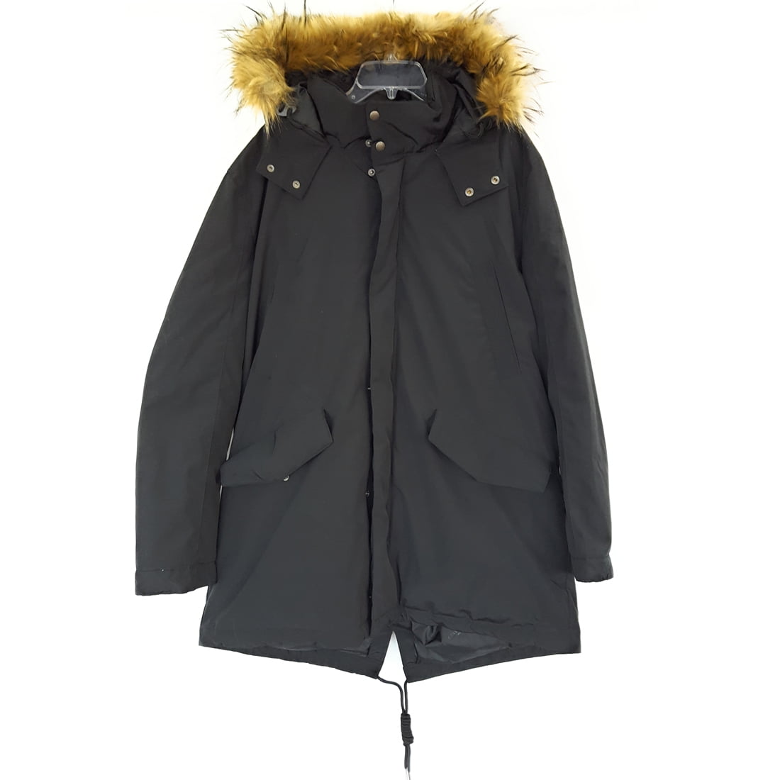 Faux Fur Hood Jacket, Black, XX-Large coat with large fur hood