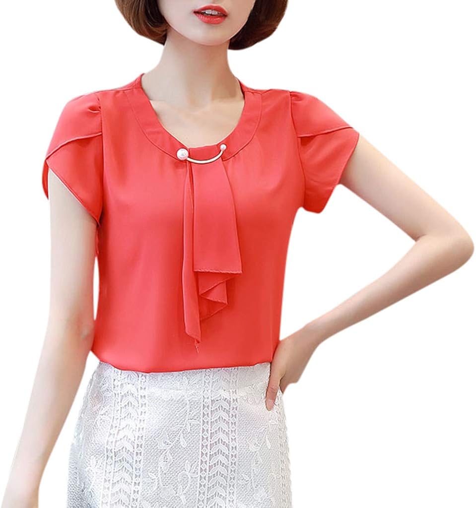 Women Short Sleeve Solid Color Chiffon amazon ladies short sleeve blouses