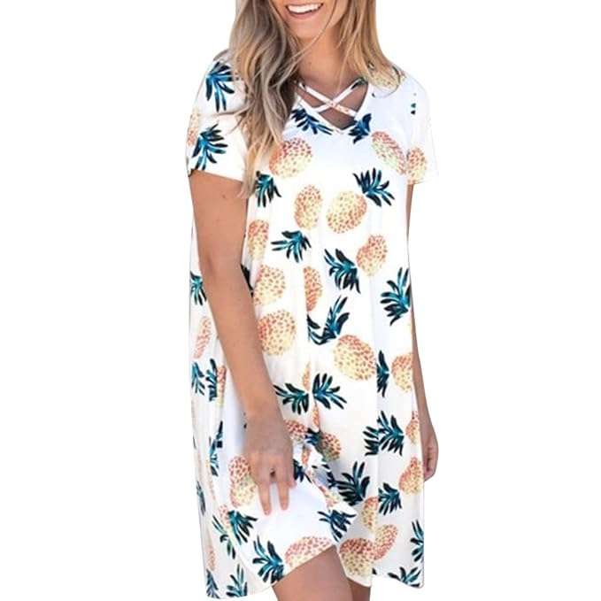 O-Neck Short Sleeve Mini Pocket Dress pineapple dress amazon