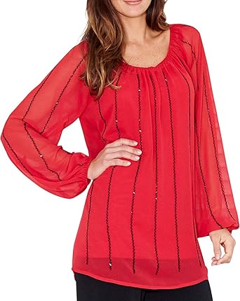 Joanna Hope Red Black Georgette Beaded plus size red tops uk