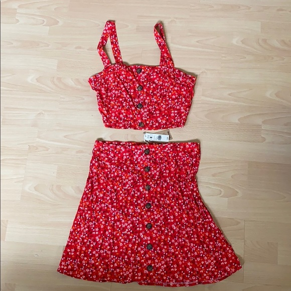 red floral two piece set