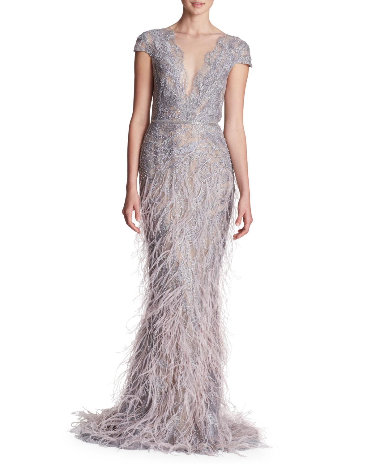 Feather Evening Dress, Sparkly Evening feather evening gown