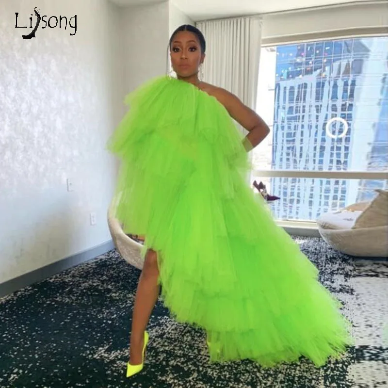 Fashion Neon Green Asymmetrical Long neon green ball gown