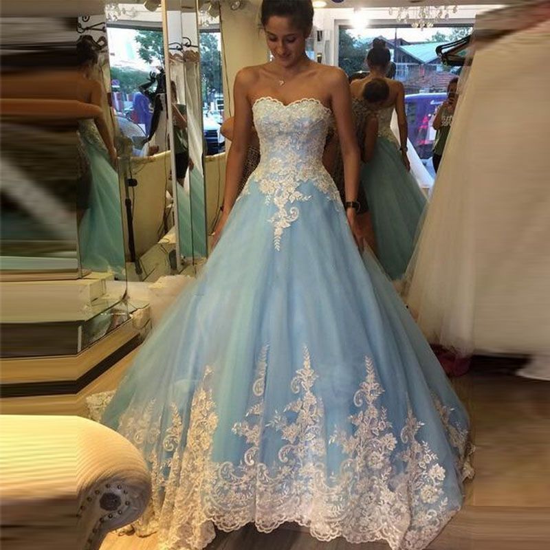 Romantic Blue Ball Gown Wedding Dress sexy blue wedding dress