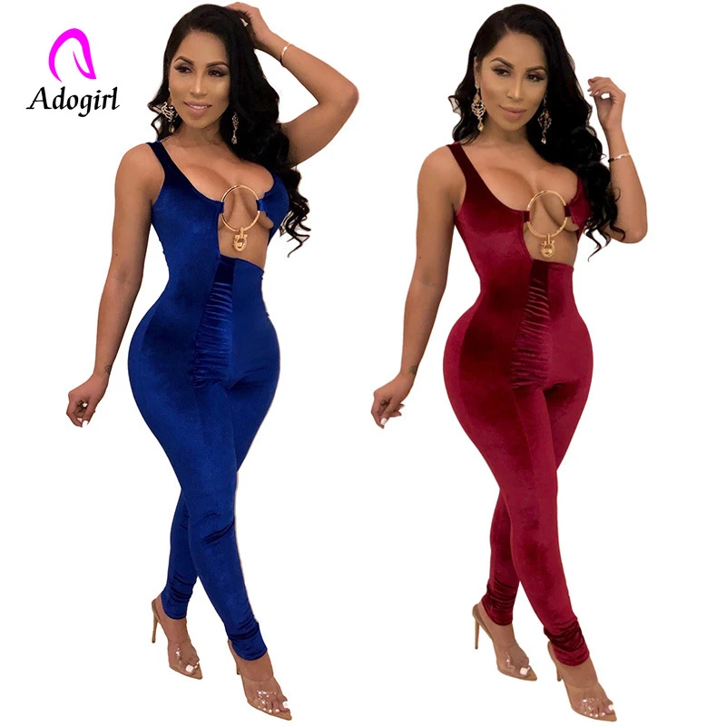 Sexy Velvet Jumpsuit Women Velour party outfit jumpsuit