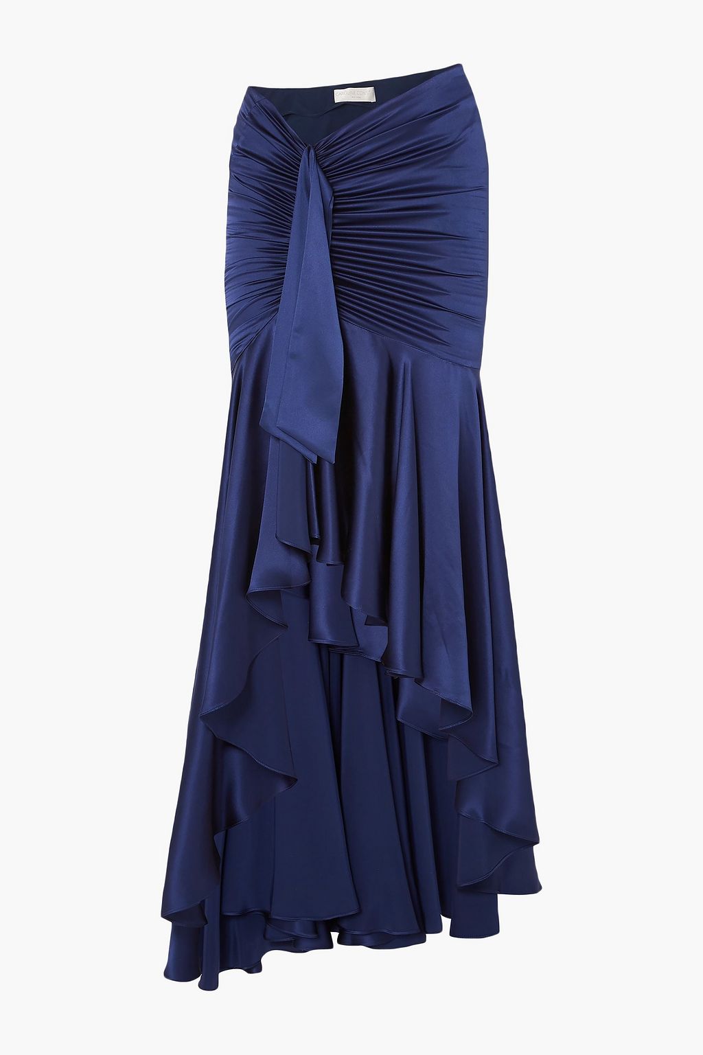 Navy Elise ruched draped silk-satin navy silk maxi skirt