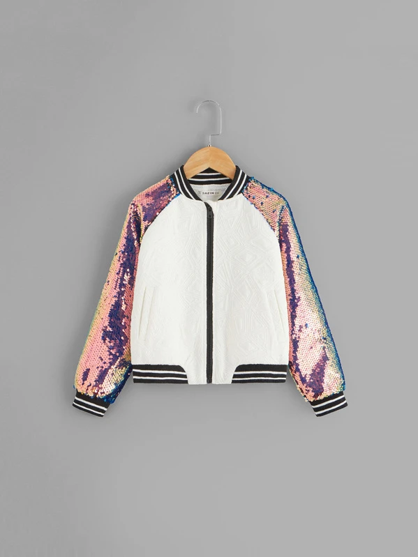 Girls Contrast Sequin Sleeve Slogan girls bomber jacket uk