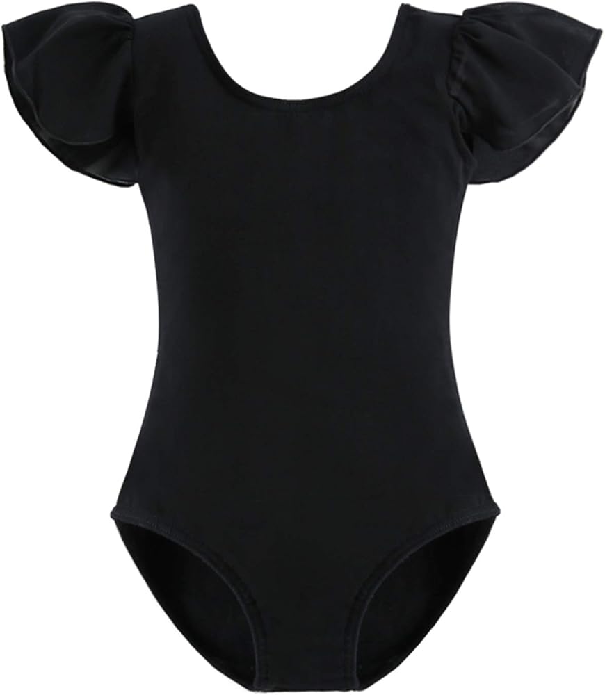 Cotton Ruffle Short Sleeve Leotard for 3t black leotard