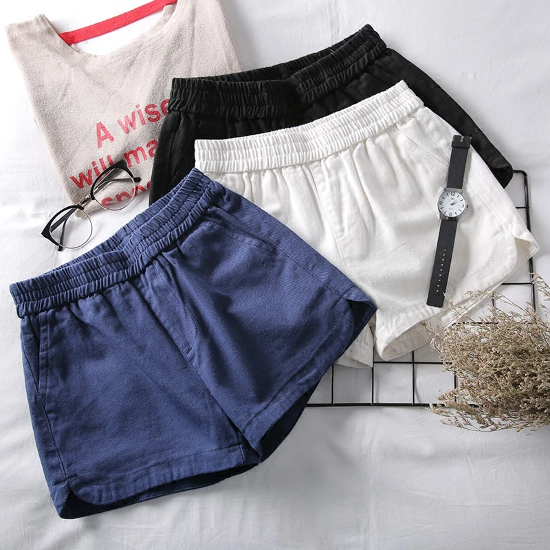 Summer Elastic High Waist Denim Shorts women's plus size white shorts