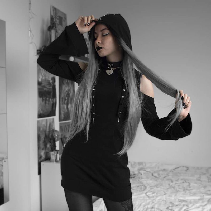 Women's Low Cut Cold Shoulder Long cold shoulder long sleeve hooded dress