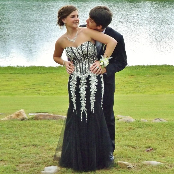 dress, black prom dress, bedazzled black bedazzled dress