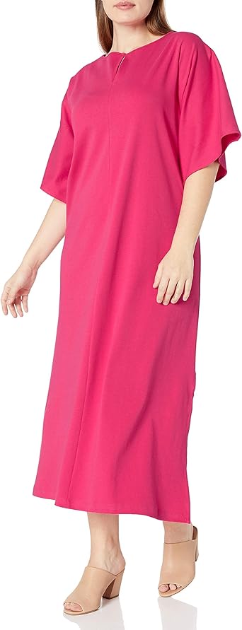 Joan Vass Women's Plus Size Slit Neck 100 percent cotton plus size dresses