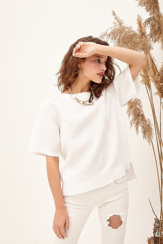 White Linen Shirt Loose Blouse Summer white linen summer tops
