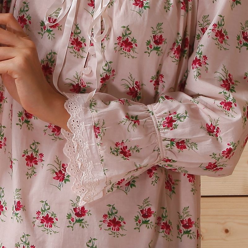 2020 Long Sleeve Short Floral Nightgown long sleeve floral nightgown