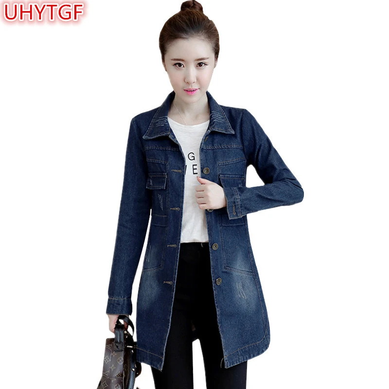 UHYTGF Plus size Spring Autumn Coats navy blue casual jackets womens