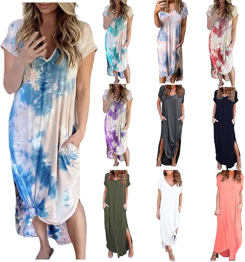 Tie Dye Dress Women Maxi Casual Short plus size tie dye dress with sleeves
