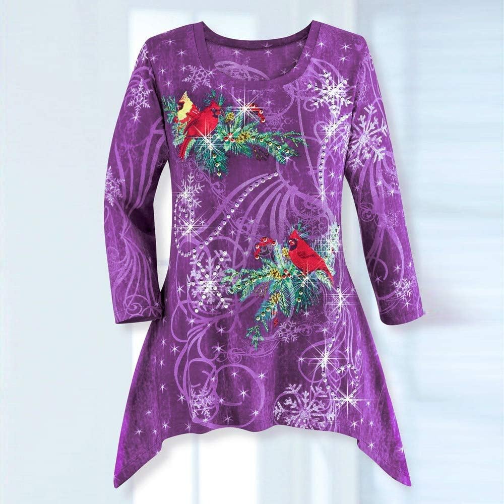 Vova | Plus Size Women's Boho Soild christmas tops for ladies plus size