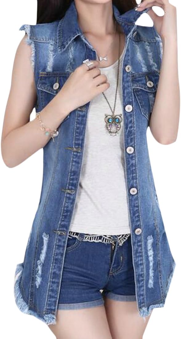 MU2M Women's Summer Long Sleeveless denim summer jacket