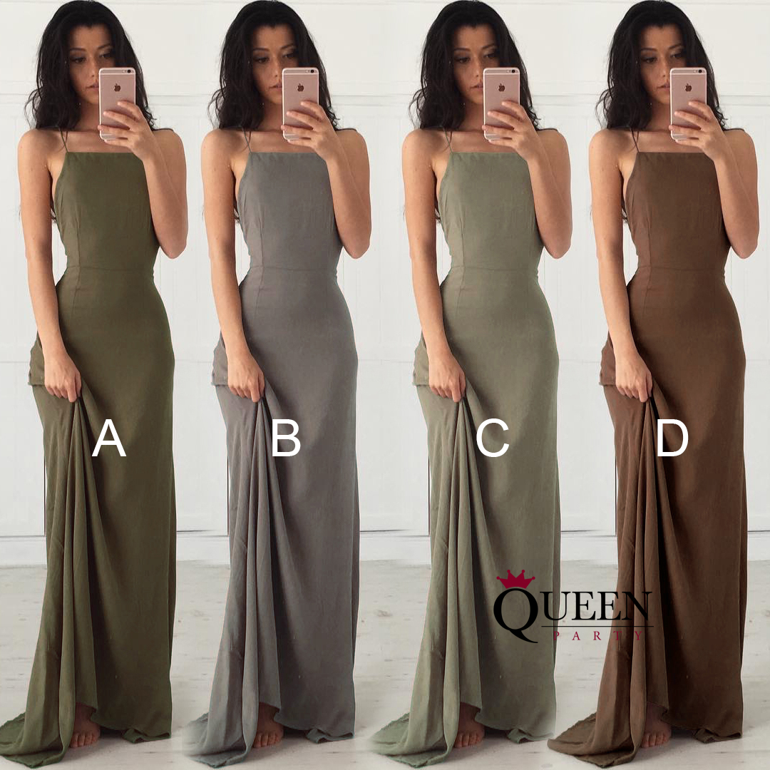 Back Silk Linen Long Prom Dress spaghetti strap silk prom dress