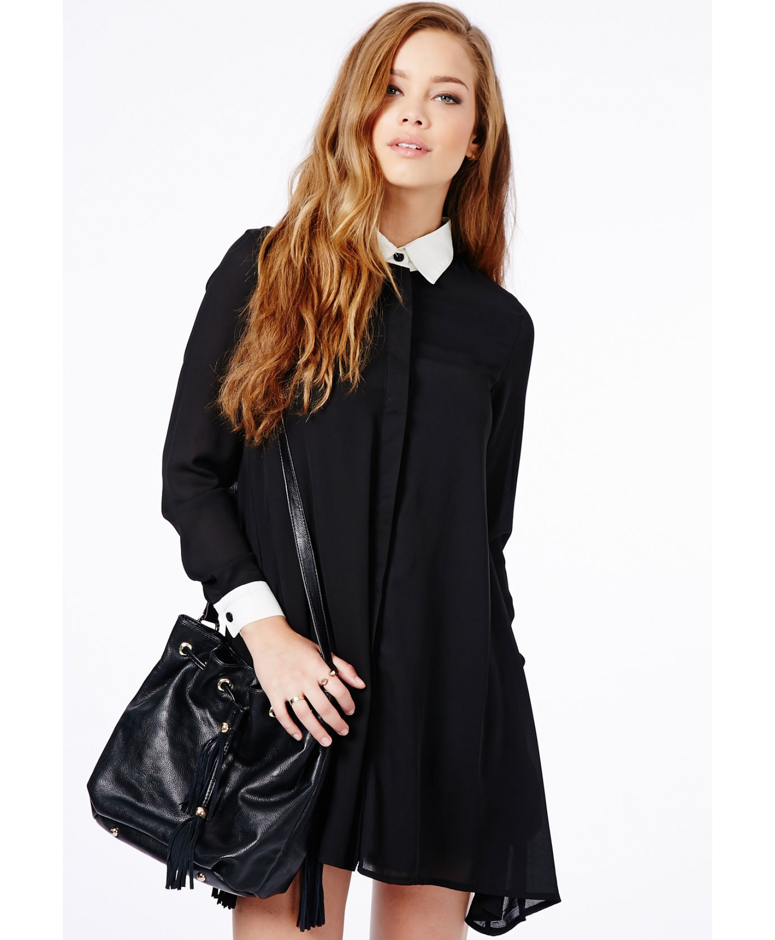 Buy Caoros Button-Down Shirt Dress with black collared shirt dress